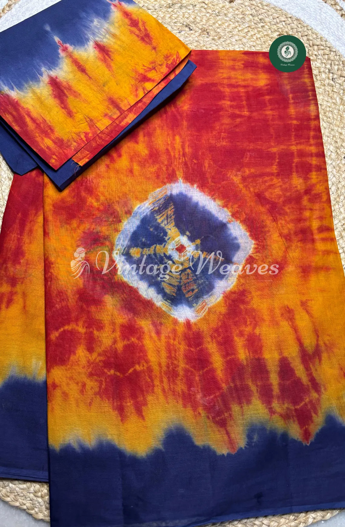 Multicolor DailyWear Cotton Saree-Orange With Blue